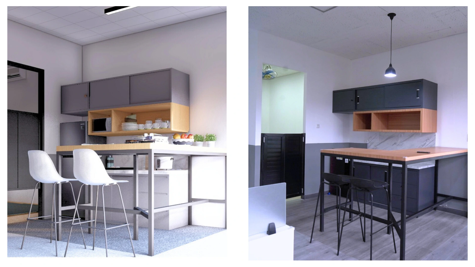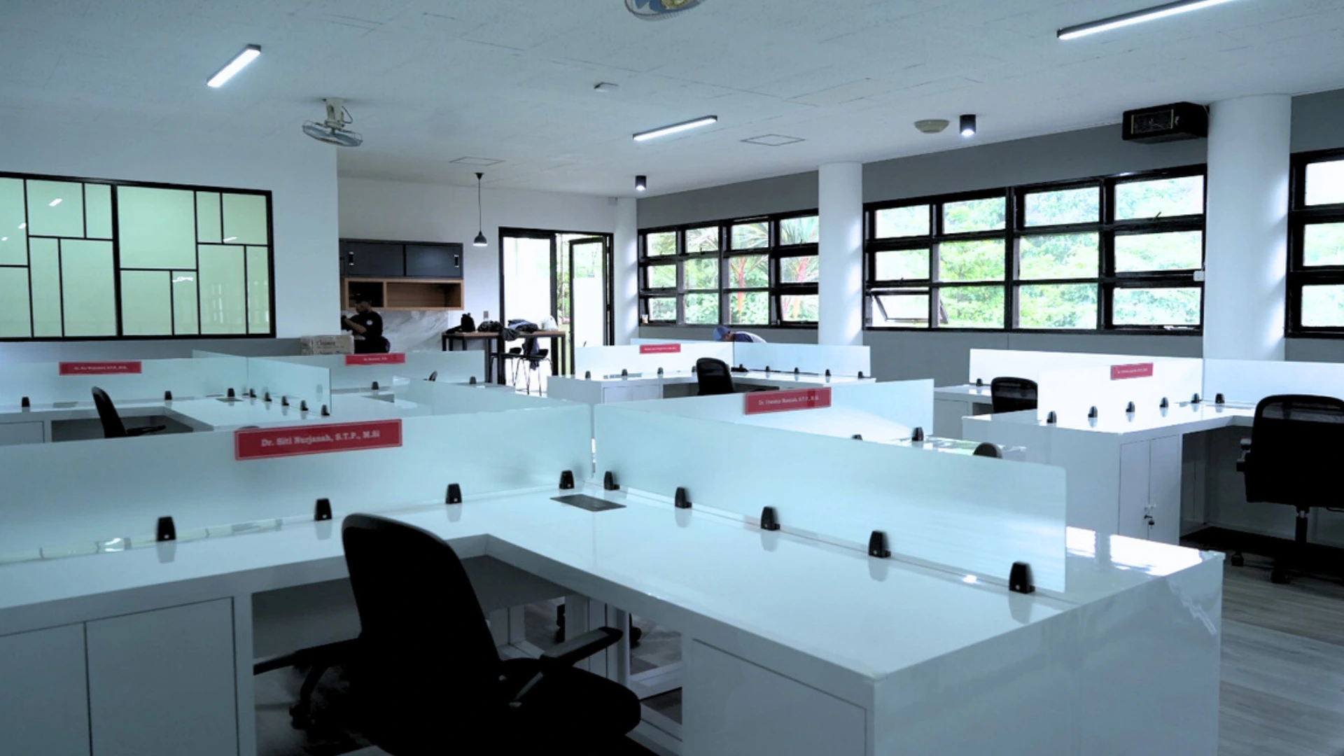 Setelah renovasi, ruang dosen terasa lebih terang, lapang, dan menyenangkan untuk bekerja, berdiskusi, maupun menerima mahasiswa atau kolega. -