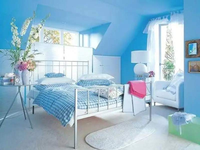 Untuk yang suka suasana lembut dan adem, kombinasi biru muda dan abu-abu terang bisa jadi pilihan sempurna.